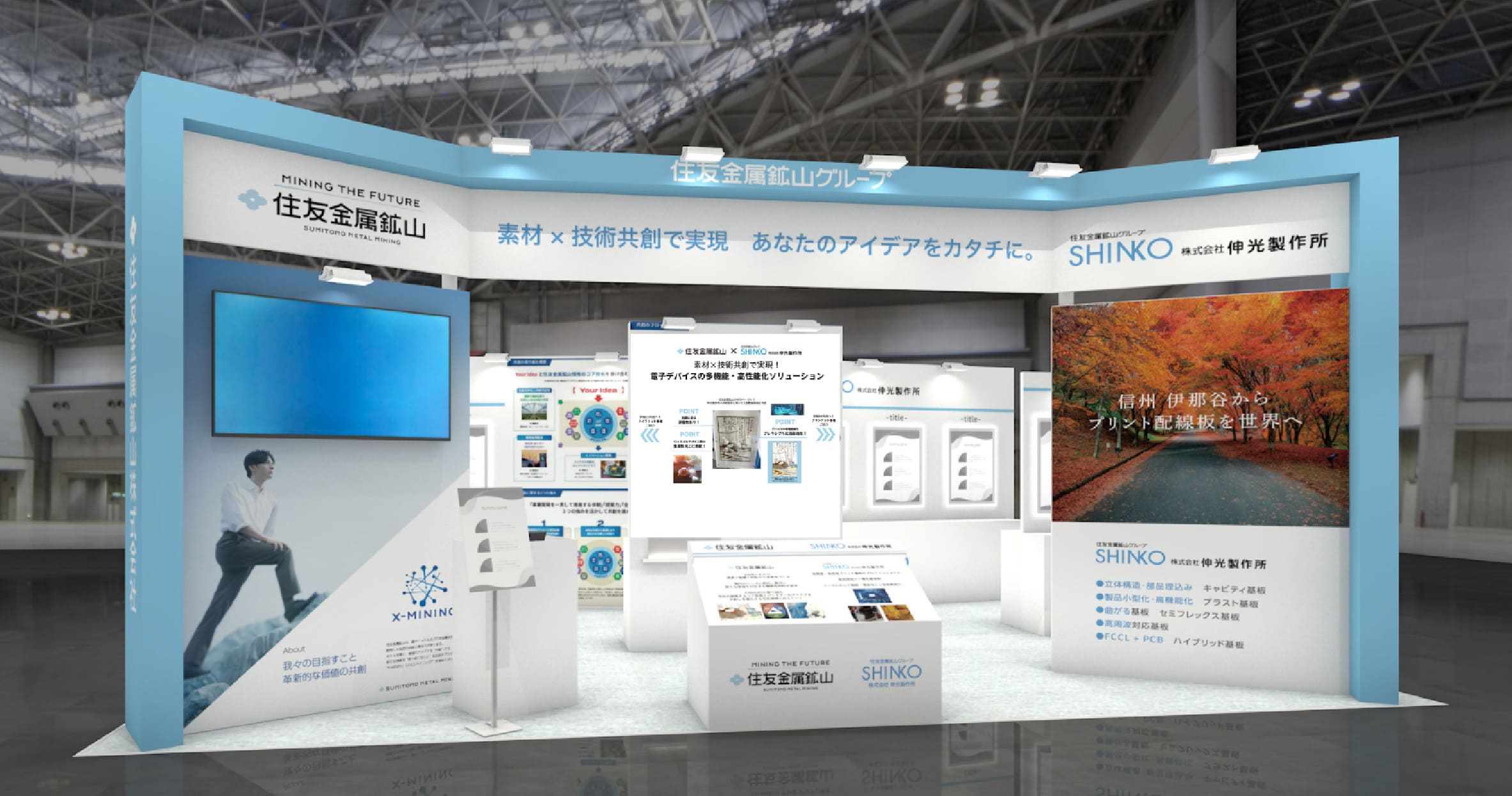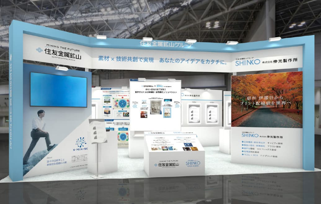 住友金属鉱山と伸光製作所は、技術の共創による新たな価値創出を目指します。 本展示会ではパワー半導体や光デバイス、EV、IoT、医療機器など、幅広い分野の多機能化・高性能化ニーズに応える最先端の材料技術と精密加工技術、そして両社の技術融合で生まれた共創事例をご紹介します。 開発課題や新規事業創出、技術連携に関心のある方は、ぜひブースでご相談ください。 共創パートナー様との新たな出会いを心よりお待ちしております。