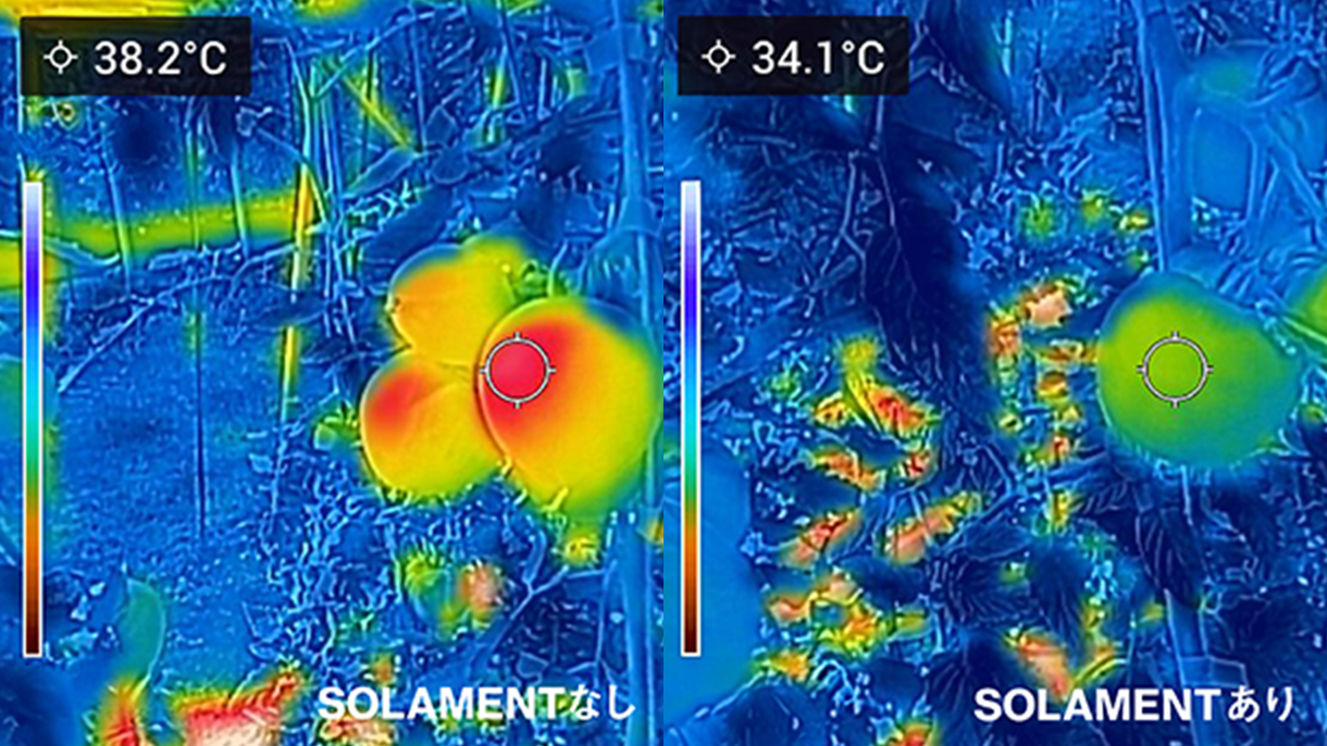 人間が熱中症になるように、作物にも限界があります。そんな中で試行錯誤を重ね、SOLAMENT®︎の遮熱ネットを導入しました。これまでと比べて、トマトが持ってしまう熱を圧倒的に抑えることができ、光合成もしっかり行われて、品質の担保につながっています。