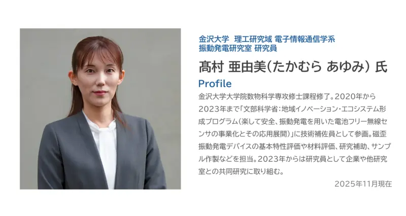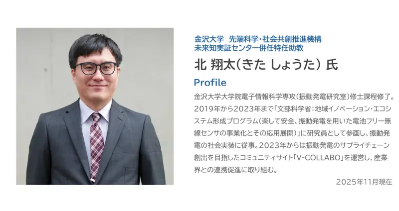 【Part 2】では、振動発電デバイスの社会実装に向けて金沢大学が取り組むサプライチェーン構築の取り組みと、金沢大学×住友金属鉱山の共創の未来について語り合います。